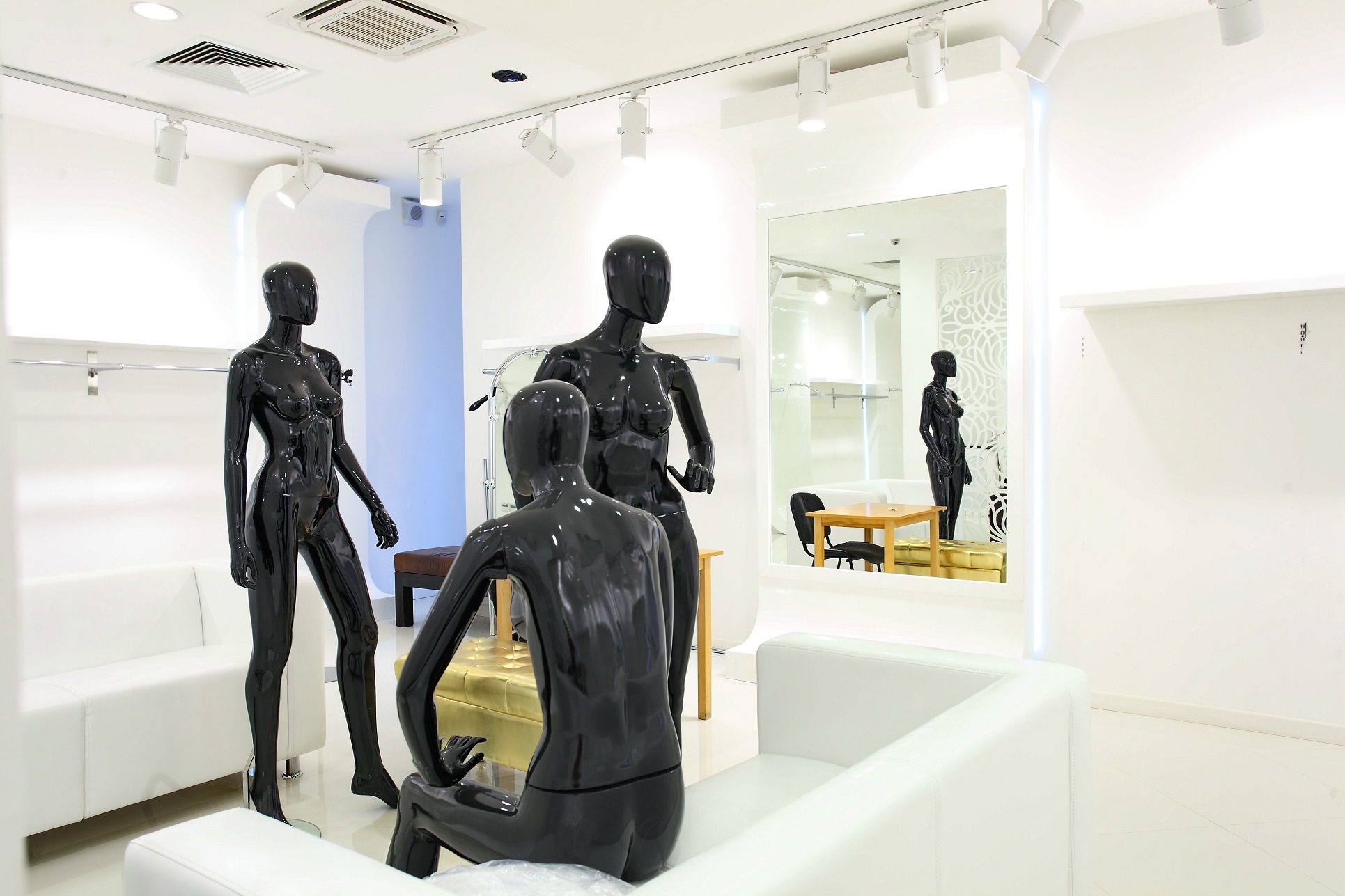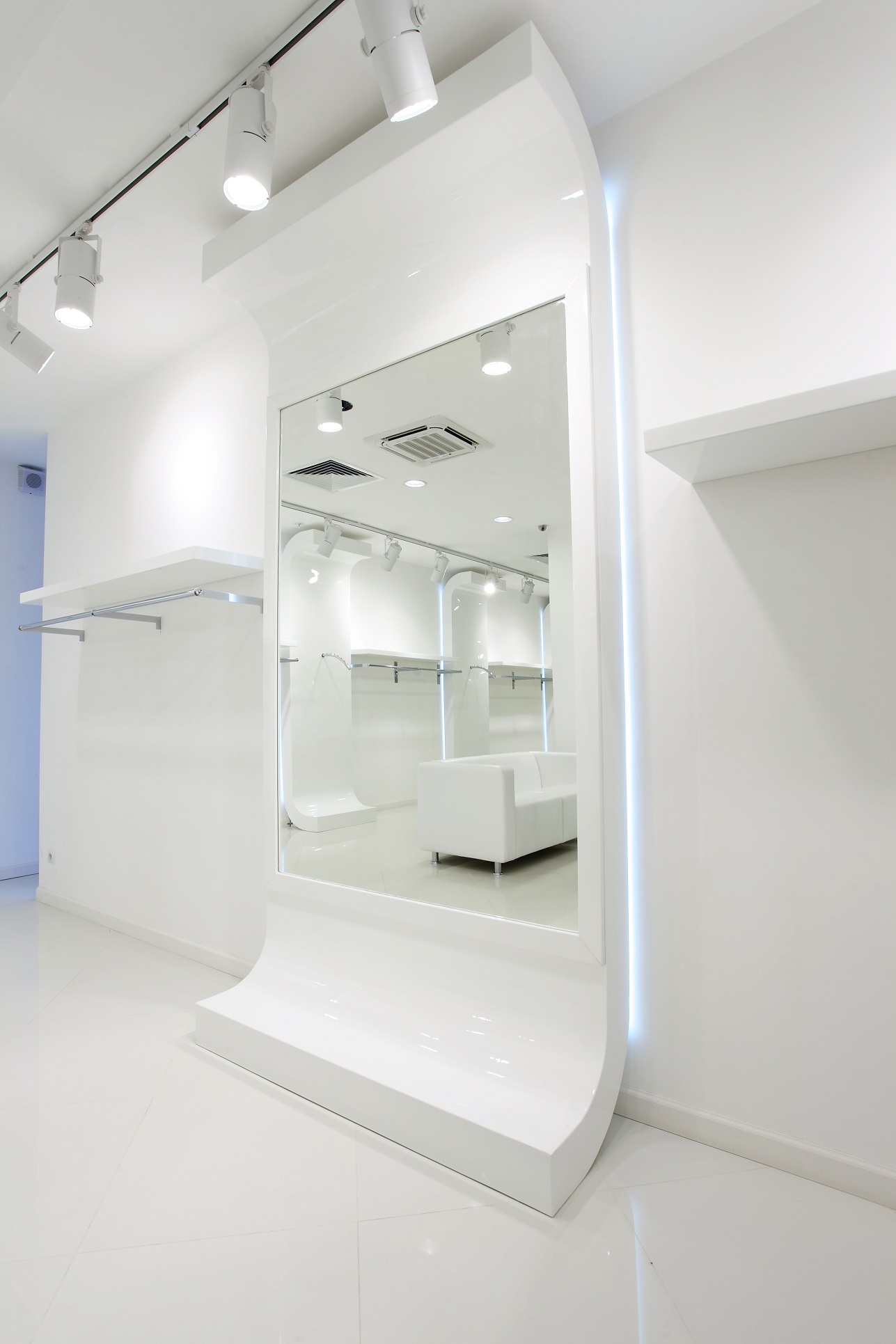 Примерочные зеркала выполняют не только декоративную и интерьерную нагрузку, но и функциональную: используются для примерки клиентами одежды и обуви.