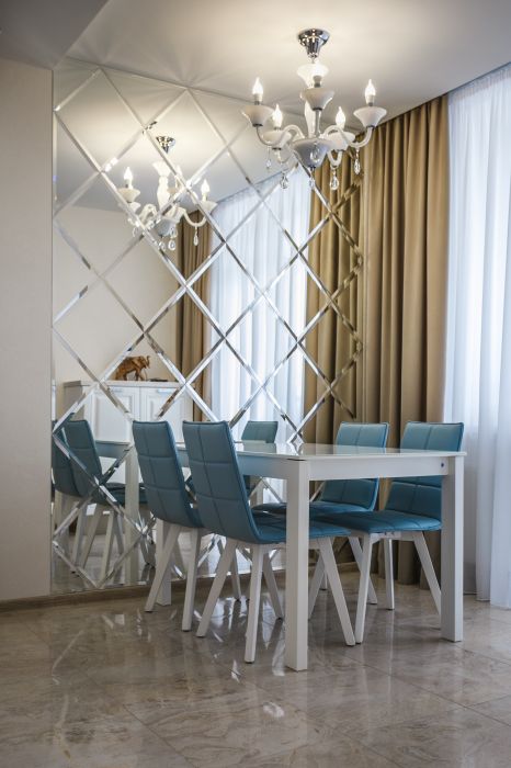 Использование элементов в виде ромба или квадрата позволяет собрать зеркальное панно любого размера и воплотить самое смелое дизайнерское решение.